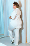 Versatilidad: Puedes usar las piezas por separado; combina la camisa abierta sobre un top básico con jeans, o el pantalón con una blusa de seda para un evento más formal.