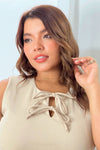 Vestido con cordones en cuello camel
