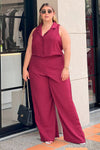 Set que consta de chaleco y pantalón, el chaleco tiene cuello y botones forrados en la misma tela del set silueta semiajustada, el pantalón tiene bolsillos, silueta amplia; Elaborado en tela gruesa, rígida y fresca