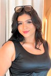 - Cuello redondo (scoop neck) que estiliza el torso.
