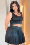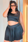 Conjunto de dos piezas compuesto por crop top y falda plisada diseñado para ofrecer frescura y comodidad en un solo look. Ideal para climas cálidos o eventos deportivos.