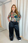 Juego de Texturas: Combínala con texturas pesadas o brillantes abajo para equilibrar la ligereza de la malla. Unos pantalones de satín de bota ancha (palazzo) o una falda de cuero sintético son opciones ganadoras.