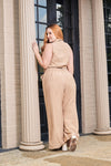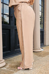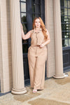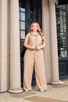 Set de dos piezas con lineas en contraste camel