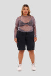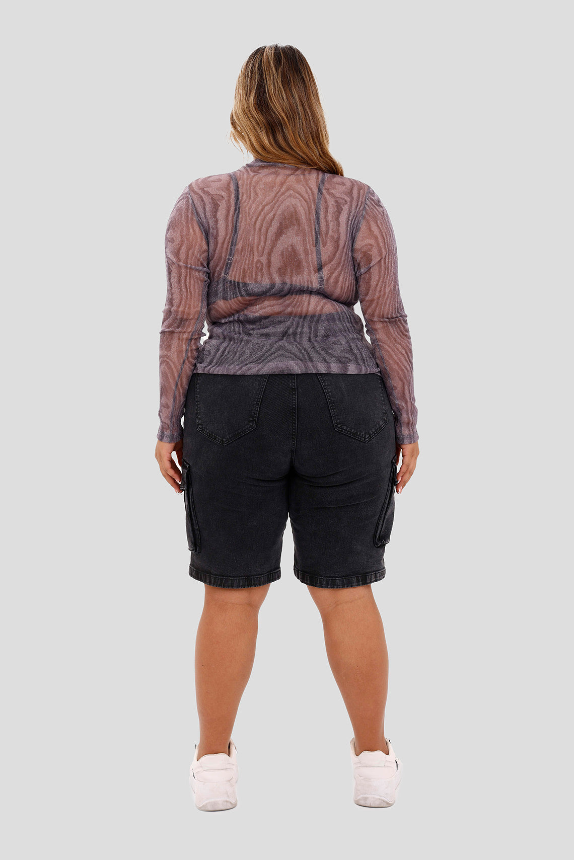 Buzo plus en malla traslúcida con estampado abstracto rosa y blanco.