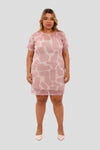 Vestido corto semitransparente ,con un toque sútil de brillos.